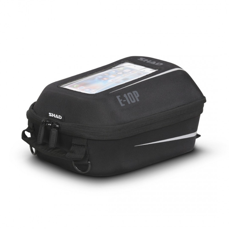 Bolso SHAD para el tanque de la Moto E10 Pin System Para usar exclusivamente con el sistema de fijaciones PIN System de SHAD para bolsas de depósito (recomendamos ver video). La E10P está llena de detalles que mejoran la experiencia de conducción, como la salida de cable, la pantalla táctil porta-smartphones y los tiradores aptos para manipularse con guantes. Características: 5 litros. Incluye cintas de seguridad Soporte telepeaje Instalación fácil y rápida en 3 minutos Ajustable en 4 posiciones diferentes para una integración máxima con la moto Forro de lluvia Reflectantes para mejorar la visibilidad Estructura semirrígida que mantiene la forma cuando está vacío y protege el interior Integración estética en la moto Soporte para móvil con pantalla táctil de 5,5 Bolsillo interno. Posibilidad de cerrar con candado. Cremalleras fáciles de abrir y cerrar con guantes Cinta para transportar la bolsa en el hombro y asa acolchada Especificaciones técnicas: -Dimensiones: 22 x 31 x 15 cm -Capacidad: 5L -Material: Polyester 600D